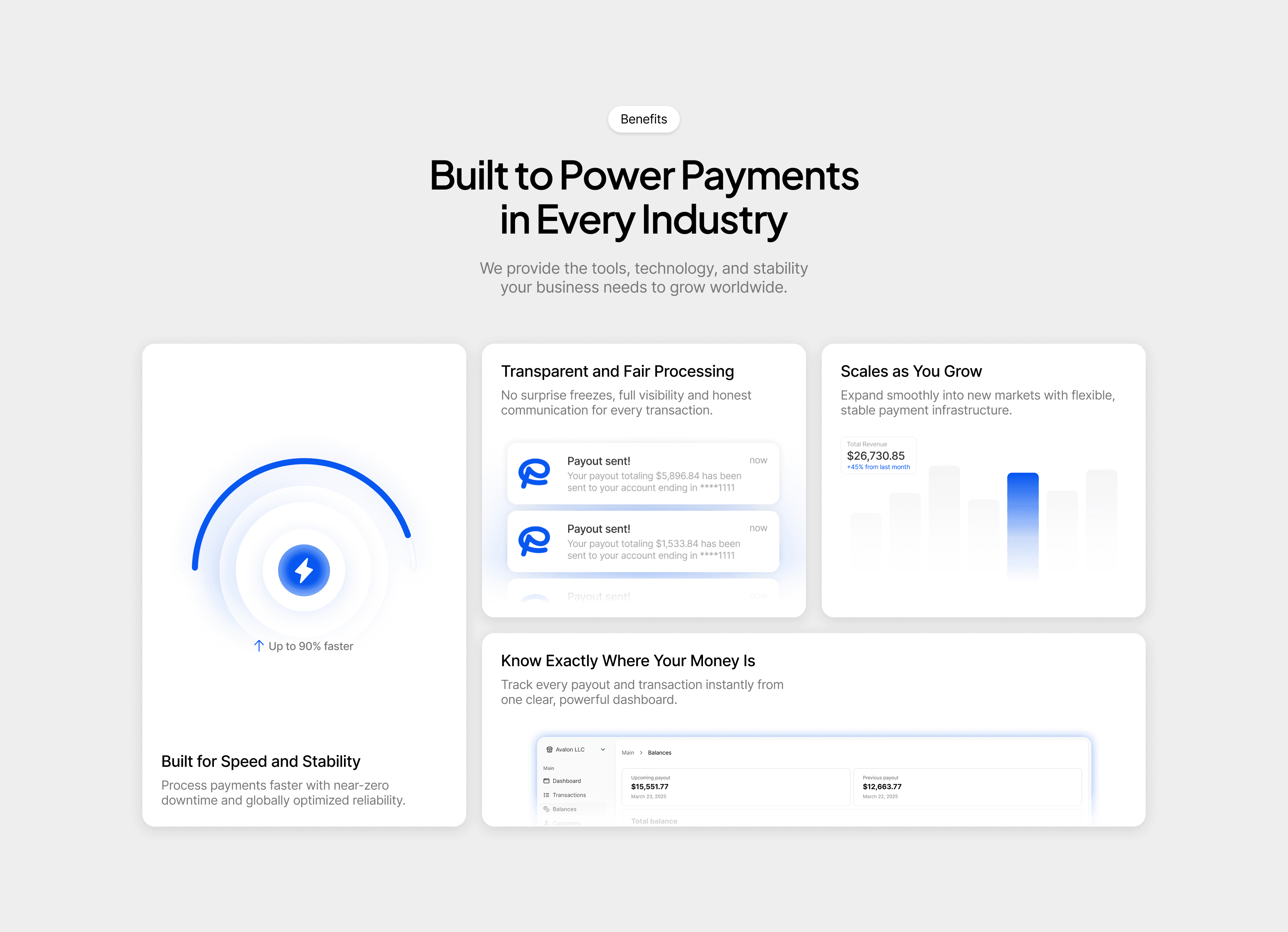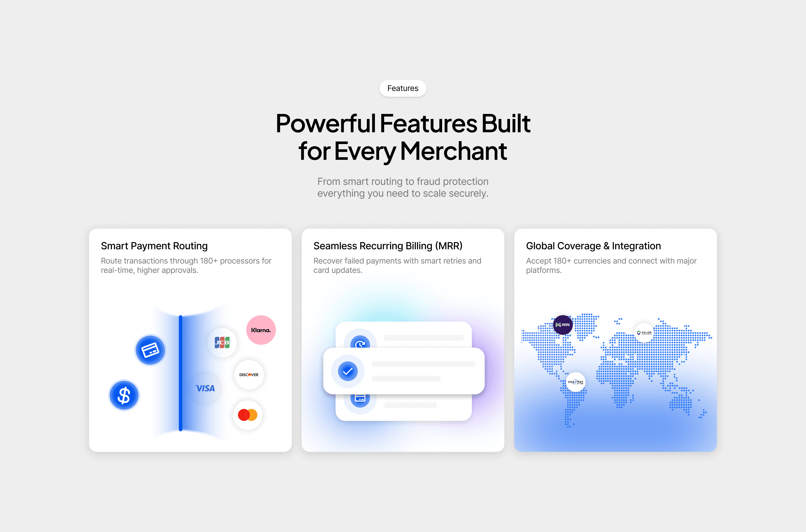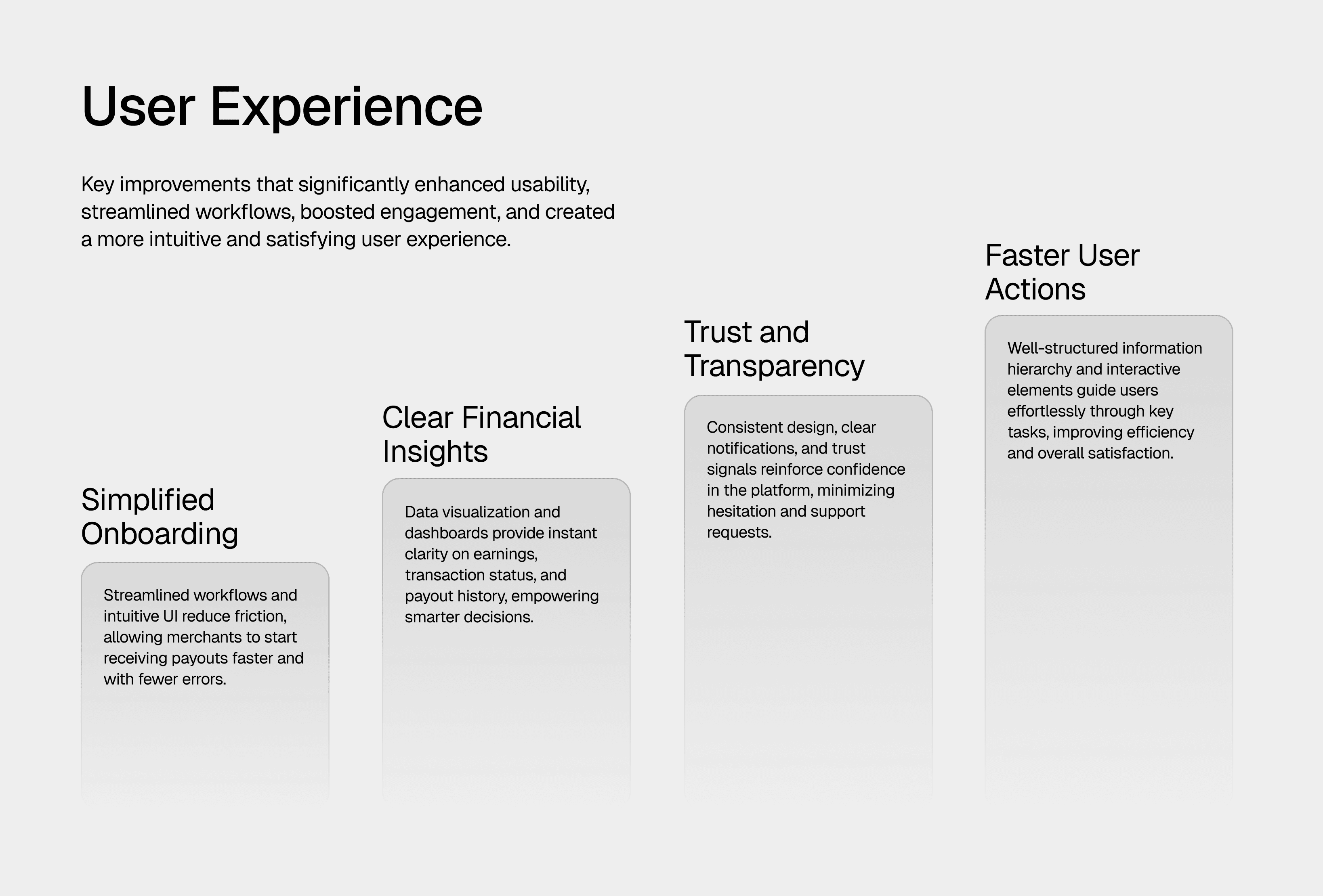 This project required translating complex payment infrastructure into a clear, approachable product experience. The design prioritizes clarity, trust, and scalability through structured layouts, side-by-side comparisons, and modular sections.